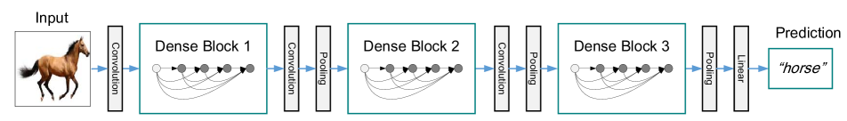 Introduced in Densely Connected Convolutional Networks, CVPR 2017, a DenseNet is a type of convolutional neural network uses dense connections between layers through Dense Blocks.