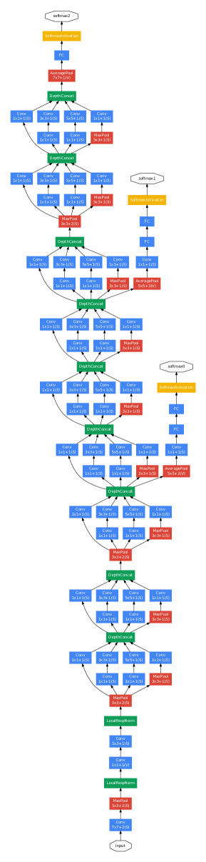 GoogLeNet, aka Inception-v1, was for ILSVRC 2014 and CVPR 2015 Going deeper with convolutions based on the Inception architecture. An Inception Module is an image model block approximates an optimal local sparse structure in a CNN, allowing the network to extract features at multiple scales simultaneously.