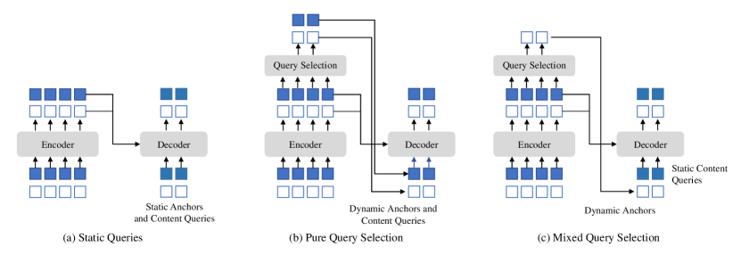 DINO uses mixed query selection. Also look forward twice (adding more connection for back-propagation), achieving great performance (DINO is around 500 epochs)