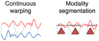 - Continuous Alignment: For modality elements are NOT already segmented and discretized, methods based on